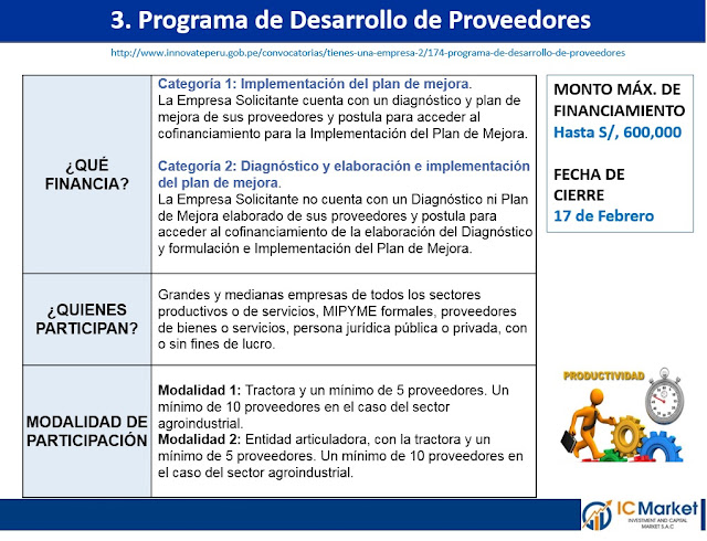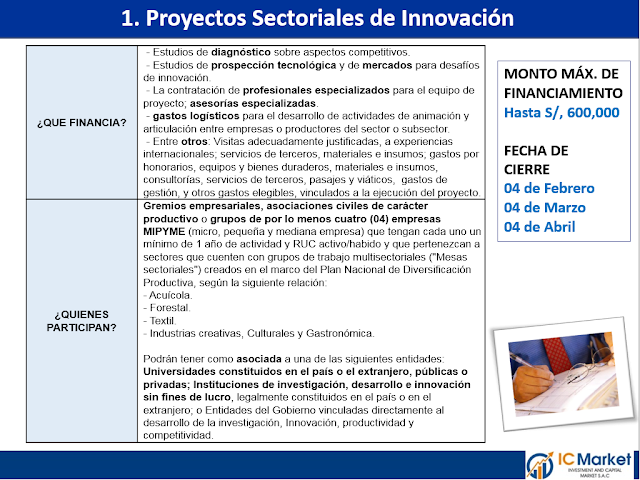 En IC MARKET. nuestro equipo profesional con amplia experiencia en estos temas ha preparado un resumen de las 12 CONVOCATORIAS VIGENTES y más relevantes para el sector productivo.
